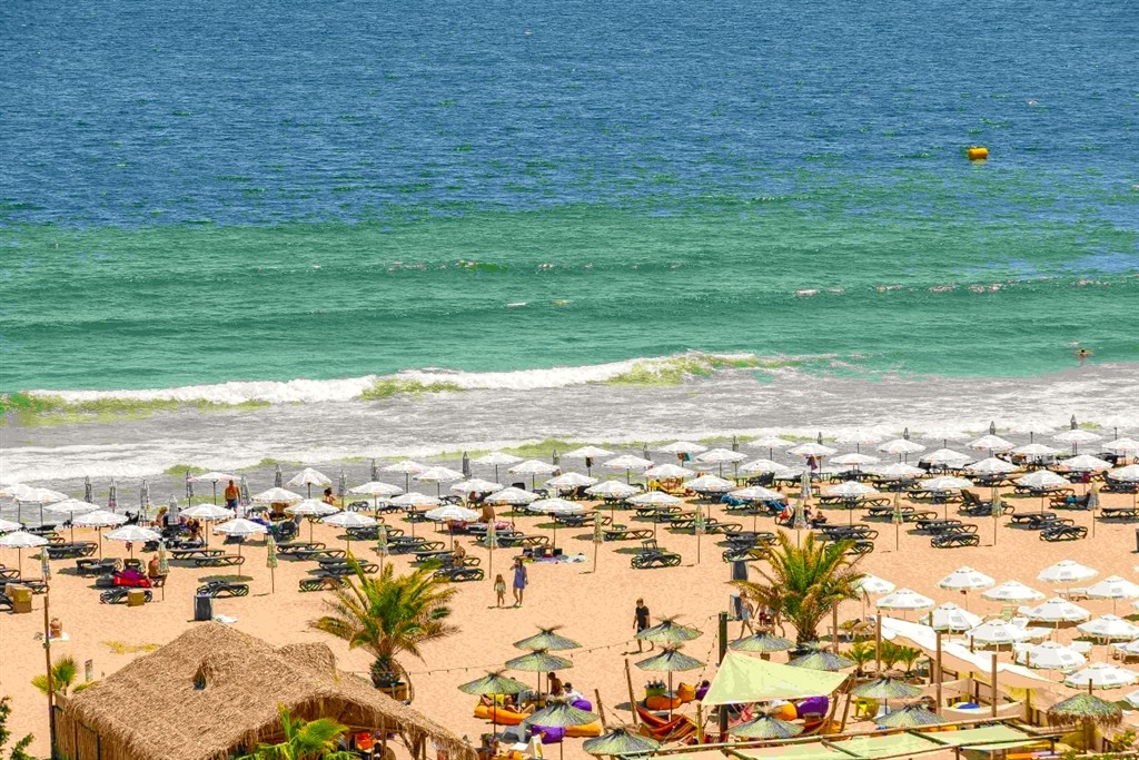 Pláž na Slnečnom pobreží patrí medzi najväčšie a najatraktívnejšie na celom pobreží. Tiahne sa v dĺžke približne osem kilometrov a je známa svojím jemným zlatistým pieskom a veľmi pozvoľným vstupom do mora, čo ju robí ideálnou pre rodiny s deťmi, ale aj pre menej skúsených plavcov. Šírka pláže dosahuje na niektorých miestach až sto metrov, takže ani počas hlavnej sezóny nepôsobí preplnene a ponúka dostatok priestoru pre všetkých návštevníkov.