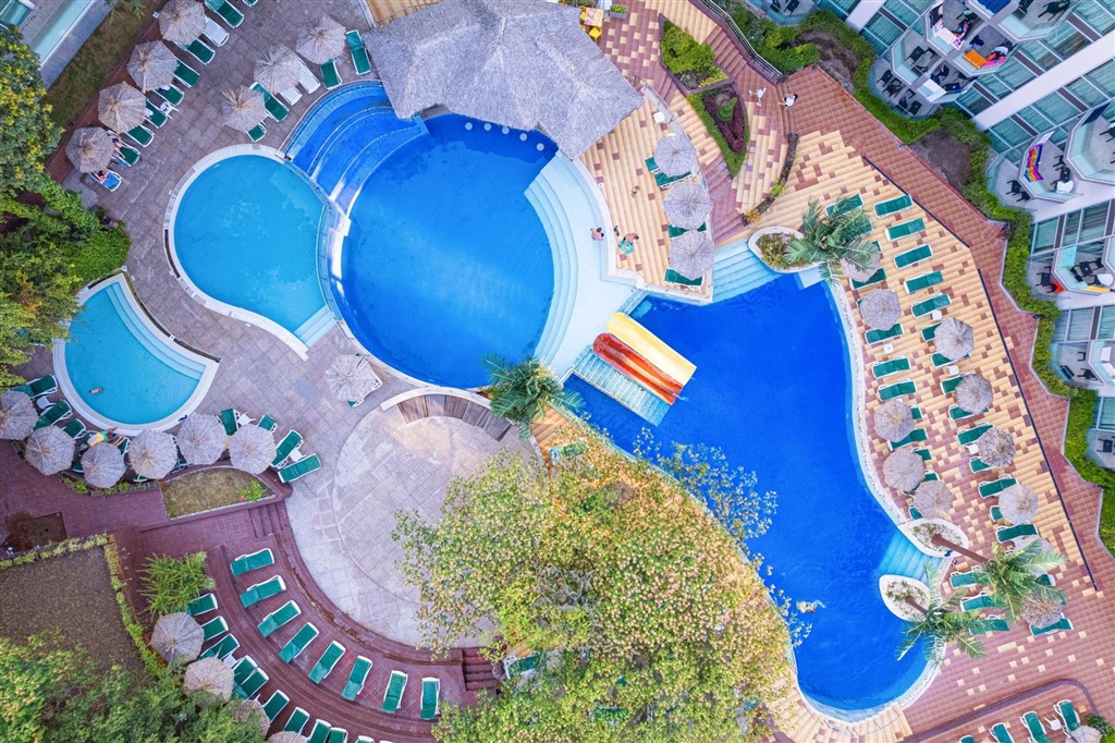 Lákadlom pre deti je množstvo bazénov s toboganmi a aquapark.