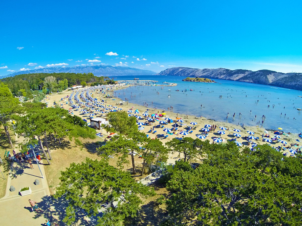 Pobrežie je tu členité s nespočetným množstvom idylických zátok a lagún s piesočnými, kamienkovými a skalnatými plážami. Rab má stredomorské podnebie, ktorého hlavným rysom je teplé leto a mierna zima. Priemerná teplota vzduchu je v lete 26°C a priemerná teplota mora od mája do októbra je cez 20°C. Ostrov Rab je veľmi obľúbenou základňou jachtárov, ale ponúka vynikajúce podmienky aj pre všetky ďalšie vodné športy a už tradične je tiež cieľom naturistov. Na ostrove sa nachádza 7 letovísk: Lopar, Barbat, Banjol, Palit, Kampor, Mundanije a Supetarska Draga a tiež mesto Rab.