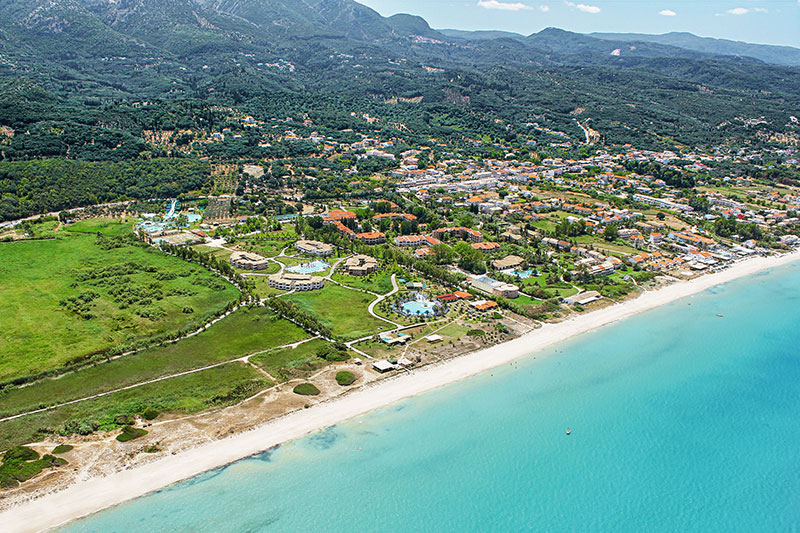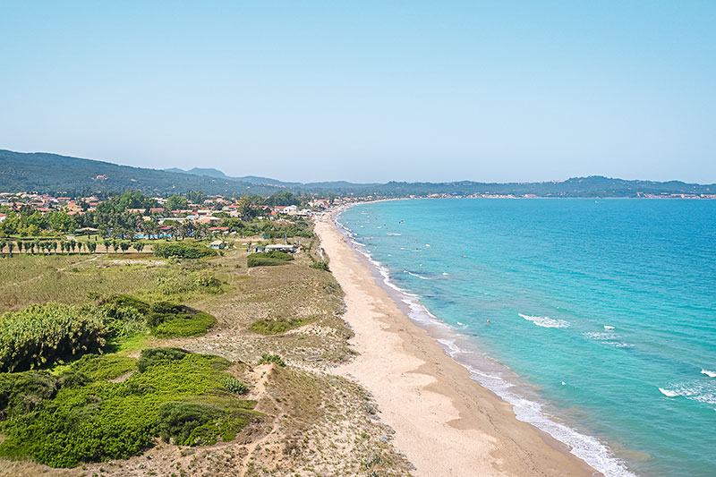 • Aghios Georgios - stredisko na západnej strane ostrova je známe svojimi pieskovými plážami a bohatými vlnami.