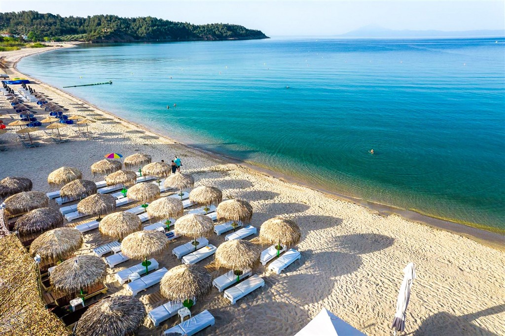 Je dlhá nádherná pláž s bielym jemným pieskom a kryštálovo čistým morom. Pláž bola ocenená Modrou vlajkou za čistotu a kvalitu služieb. Pláž je súkromná, preto je aj spoplatnená.